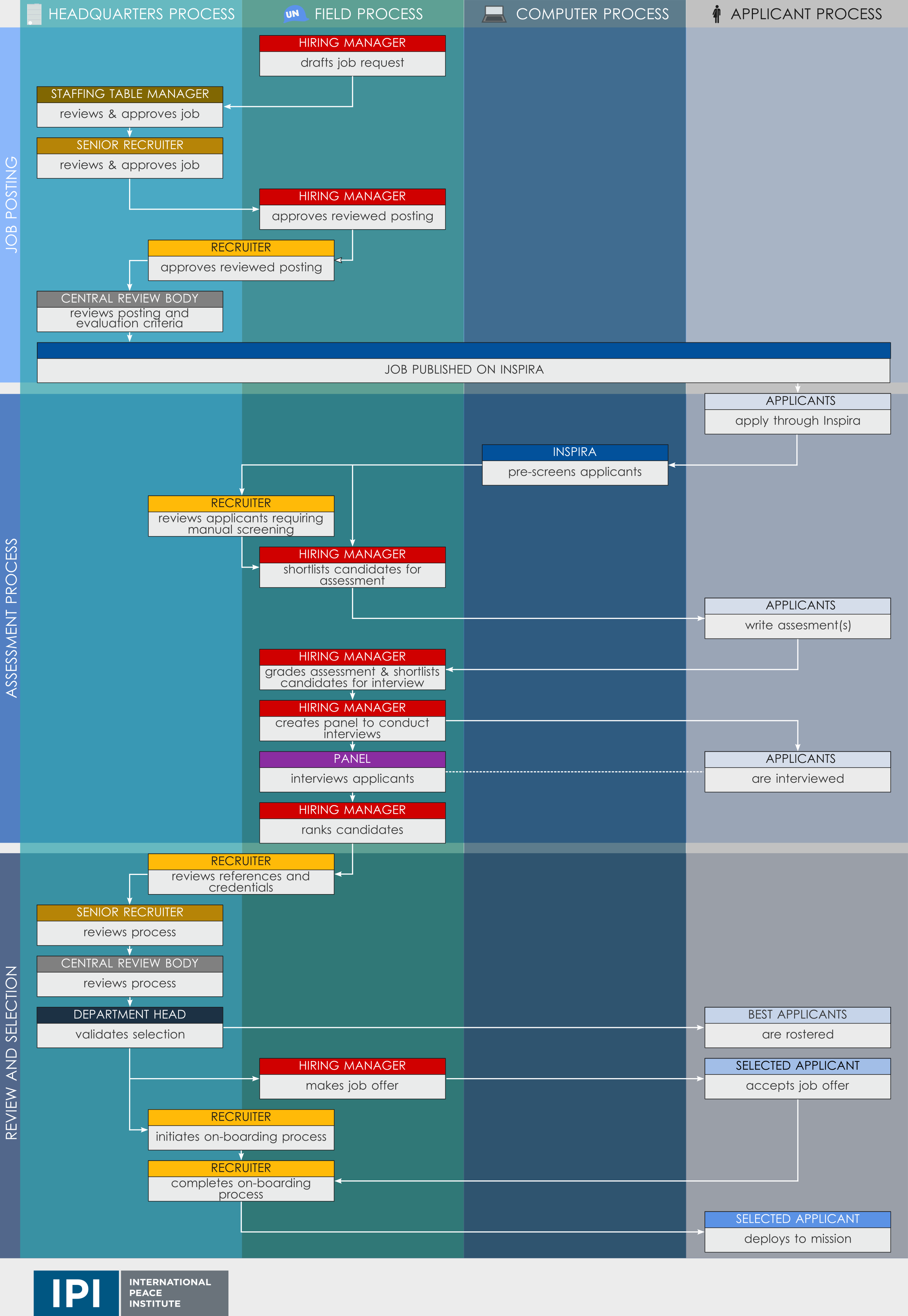 This Infographic shows the process, timeline and steps involved in the UN recruitment process. This image aims to portray the complexity of the process and highlight the lengthy timeline involved.