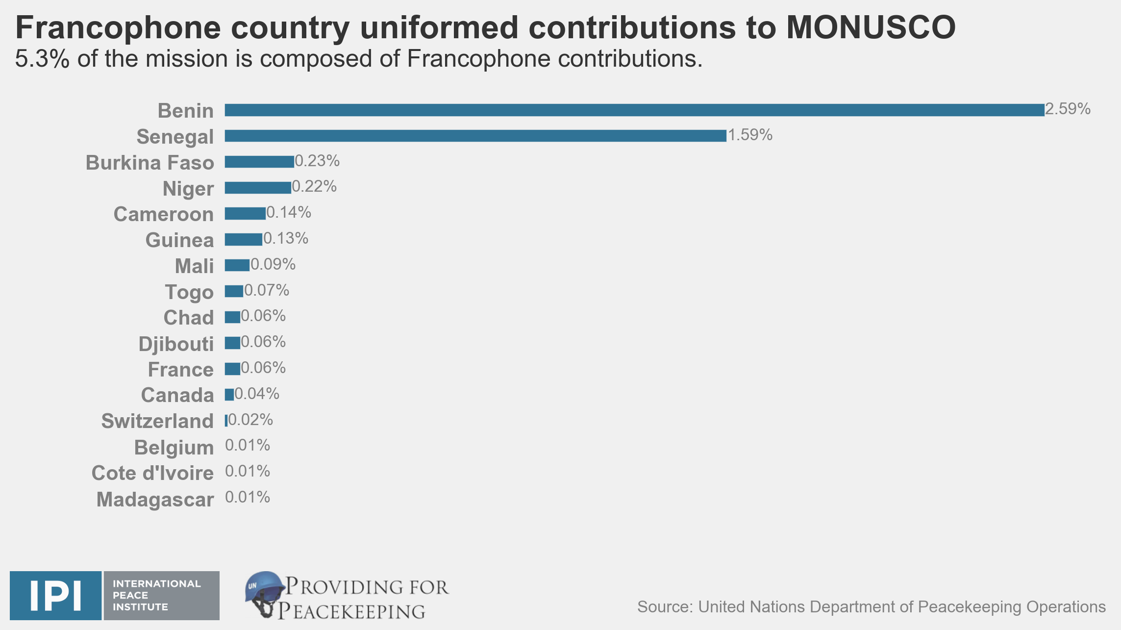 This graph shows Francophone contributions to MONUSCO as of December 2016.
