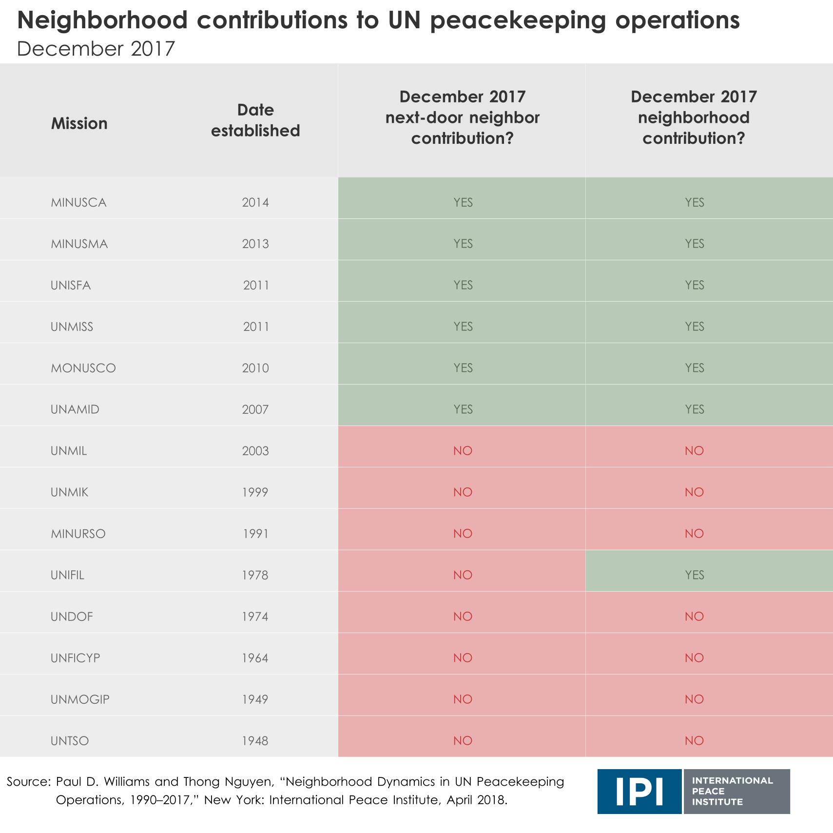 Missions receiving troop and police contributions from their next-door neighbors and neighborhoods